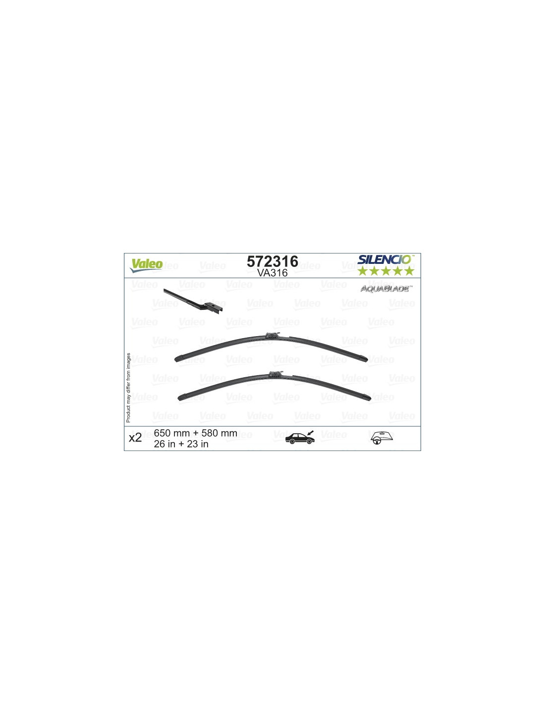 Viskerblade sæt Valeo Aquablade VA316. Kode: VA316, Længde: 650/575.
