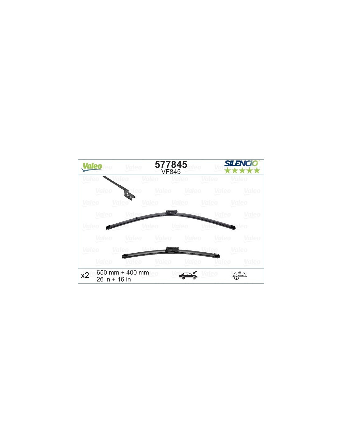 Viskerblade sæt Valeo Silencio VF845. Kode: VF845, Længde: 650/400.