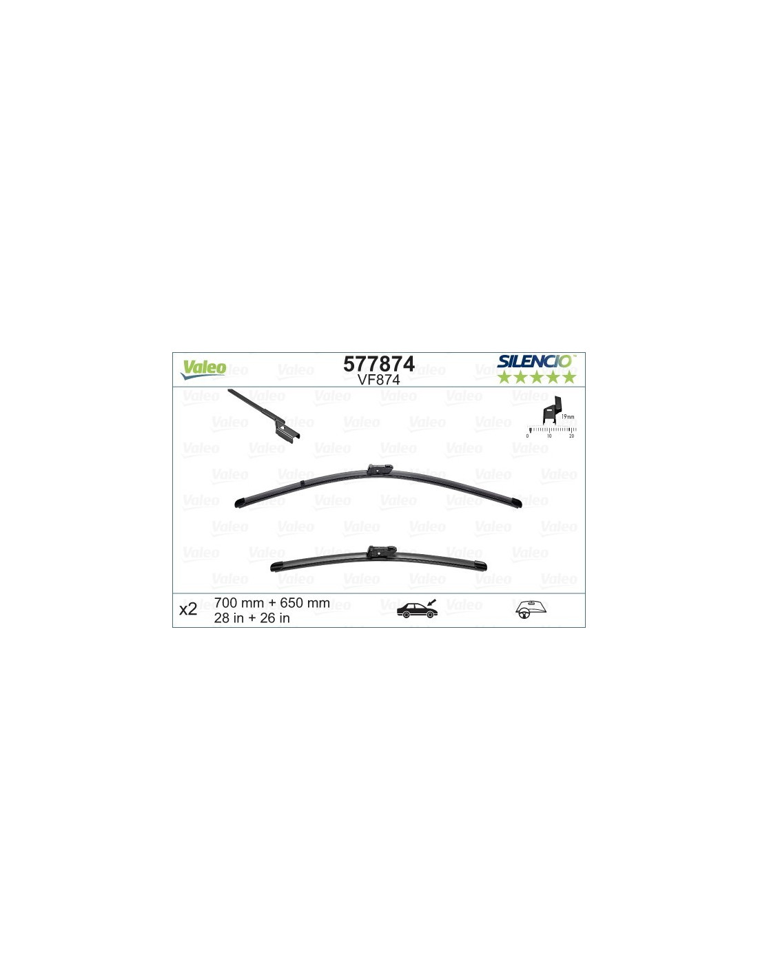 Viskerblade sæt Valeo Silencio VF874. Kode: VF874, Længde: 700/650.