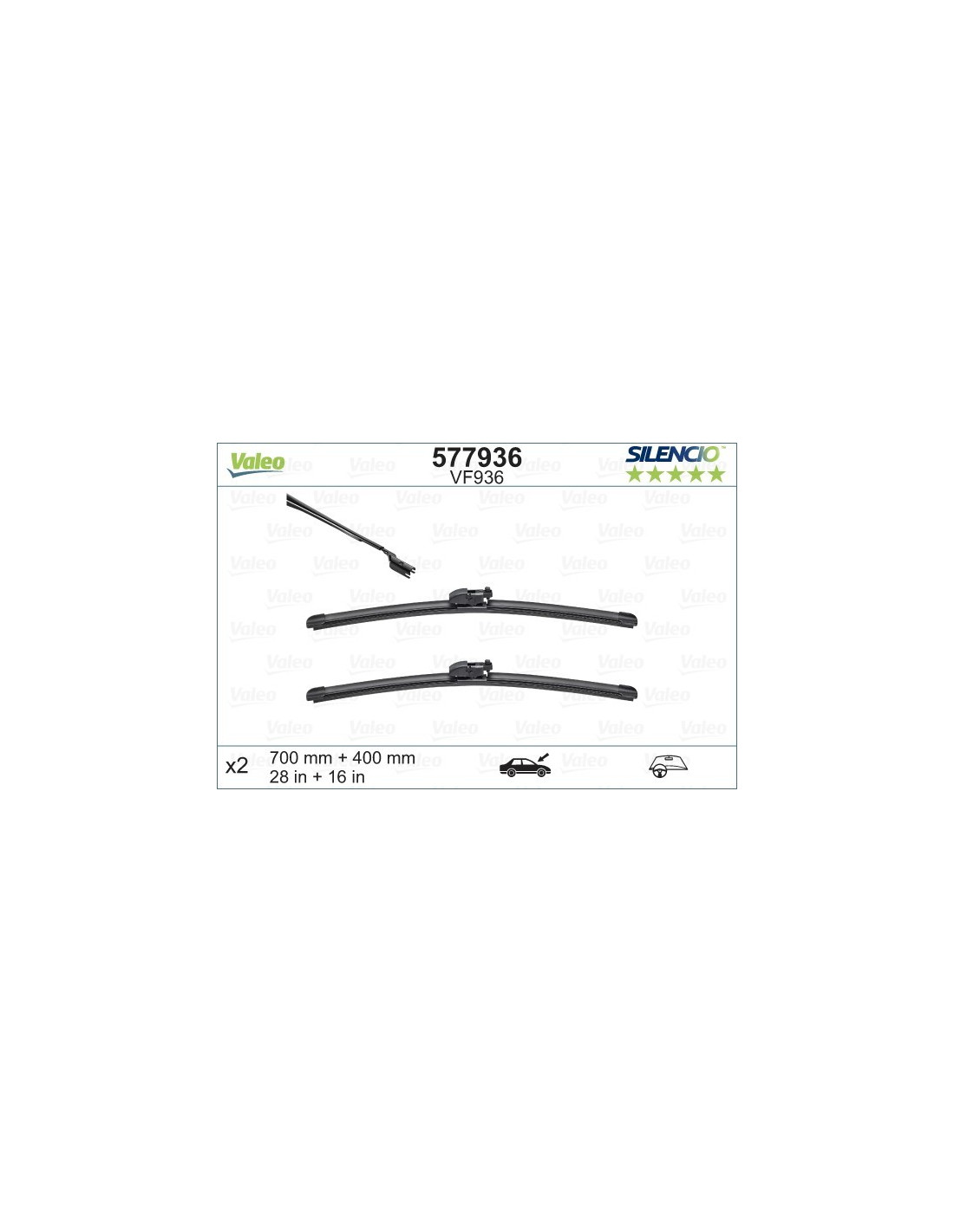 Viskerblade sæt Valeo Silencio VF936. Kode: VF936, Længde: 700/400.