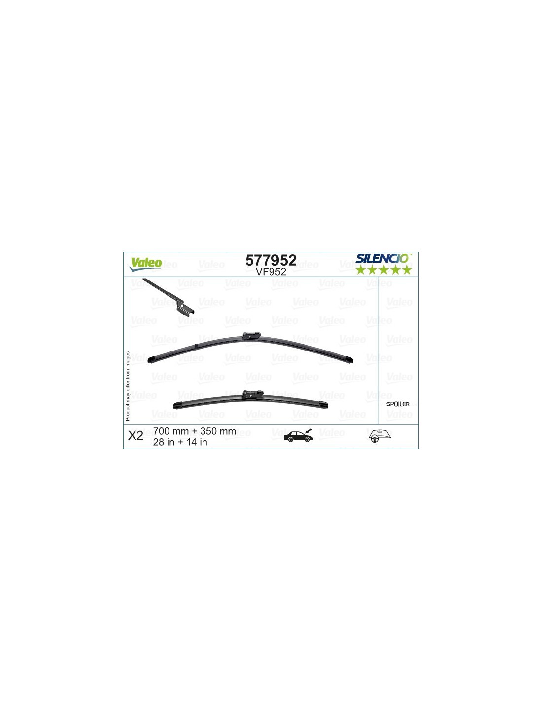 Viskerblade sæt Valeo Silencio VF952. Kode: VF952, Længde: 700/350.